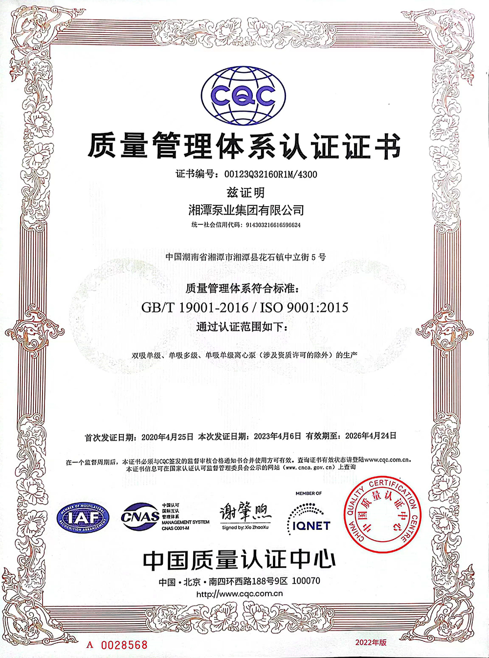質(zhì)量管理體系認(rèn)證證書
