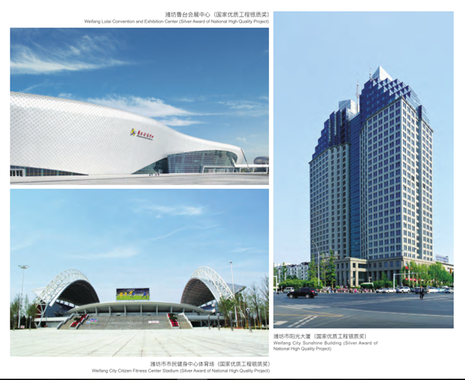 可承擔200米及以下、各類跨度的房屋建筑工程,高度240米及以下的構(gòu)筑物。集團公司年均完成建筑工程面積1500余萬平方米,創(chuàng)成“魯班獎”、“國家優(yōu)質(zhì)工程”、“中國人居環(huán)境(范例)獎”、“全國科技創(chuàng)新示范工程”、“全國市政金杯示范工程”、“泰山杯”、“天府杯”、“山東省優(yōu)質(zhì)工程”、“山東省市政金杯”、“鳶都杯”等名牌工程300余個。