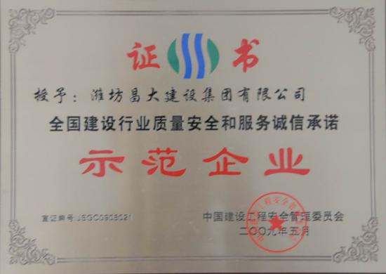 濰坊昌大建設(shè)集團榮獲“全國安全生產(chǎn)優(yōu)秀施工企業(yè)”等三個全國性獎項