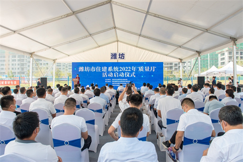 2022年9月1日上午,濰坊全市住建系統(tǒng)2022年“質(zhì)量月”活動在濰坊市東方名著項目現(xiàn)場舉行啟動儀式,市住建局黨組書記、局長鐘光文出席活動,就本次活動提出相關(guān)要求,并與嘉賓一同按下開啟按鍵,拉開了2022年濰坊市“質(zhì)量月”活動序幕。市住建局黨組成員、建筑業(yè)發(fā)展服務(wù)中心主任許增賢出席活動。集團公司總裁朱九洲出席啟動儀式并代表施工企業(yè)作表態(tài)發(fā)言。集團公司總工程師房海赴臨沂主會場參加活動并接受2021年度優(yōu)質(zhì)結(jié)構(gòu)獎頒獎。 在今天濰坊“質(zhì)量月”活動啟動儀式上,與會人員在現(xiàn)場通過網(wǎng)絡(luò)觀看了全省在臨沂主會場,主題為“推動質(zhì)量變革創(chuàng)新、促進質(zhì)量強國建設(shè)、建設(shè)品質(zhì)工程、筑就美好生活”的質(zhì)量月活動啟動儀式。在主會場儀式上,有主會場當?shù)仡I(lǐng)導(dǎo)和省廳有關(guān)領(lǐng)導(dǎo)的致辭講話、有部署全省住建系統(tǒng)質(zhì)量月活動安排、觀看《匠心筑夢質(zhì)享未來》工程質(zhì)量提升成果專題片、通報山東省近十年爭創(chuàng)魯班獎和國家優(yōu)質(zhì)工程獎情況、為2021年優(yōu)質(zhì)結(jié)構(gòu)獎代表頒發(fā)證書、為“天元大工匠”代表頒發(fā)證書,建設(shè)、施工、勘察、設(shè)計、監(jiān)理、檢測等行業(yè)代表宣讀關(guān)于落實工程質(zhì)量的倡議書、各地市質(zhì)量提升成果展示等等。在濰坊啟動儀式上,項目建設(shè)單位、總承包施工企業(yè)和監(jiān)理企業(yè)代表作了表態(tài)發(fā)言。 濰坊各縣市、市屬各開發(fā)區(qū)住建局局長、建筑業(yè)中心主任或質(zhì)量安全服務(wù)站站長;中心城區(qū)(奎文、濰城、坊子、寒亭、高新)監(jiān)管機構(gòu)質(zhì)量監(jiān)督人員代表;高新區(qū)工程項目建設(shè)單位、施工單位、監(jiān)理單位代表 參加會議。 據(jù)悉,今年9月是全國第45個質(zhì)量月。 本次活動還是加強了疫情管控,所有參會人員在近14天均不得途經(jīng)中高風(fēng)險地區(qū)和必須提供48小時核酸陰性證明。
